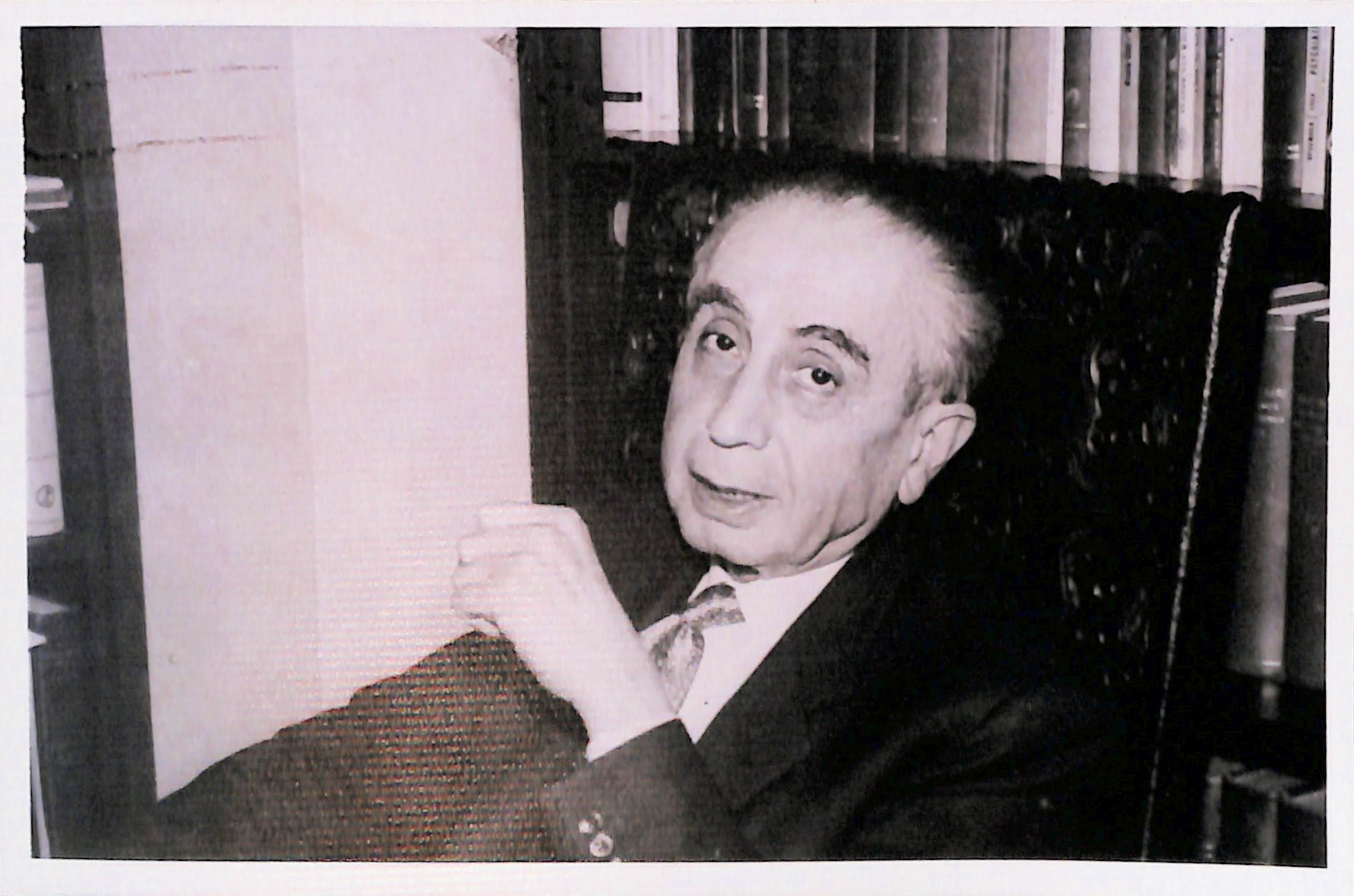Fotografía de perfil ampliada del Dr. Honorio Delgado en su biblioteca.