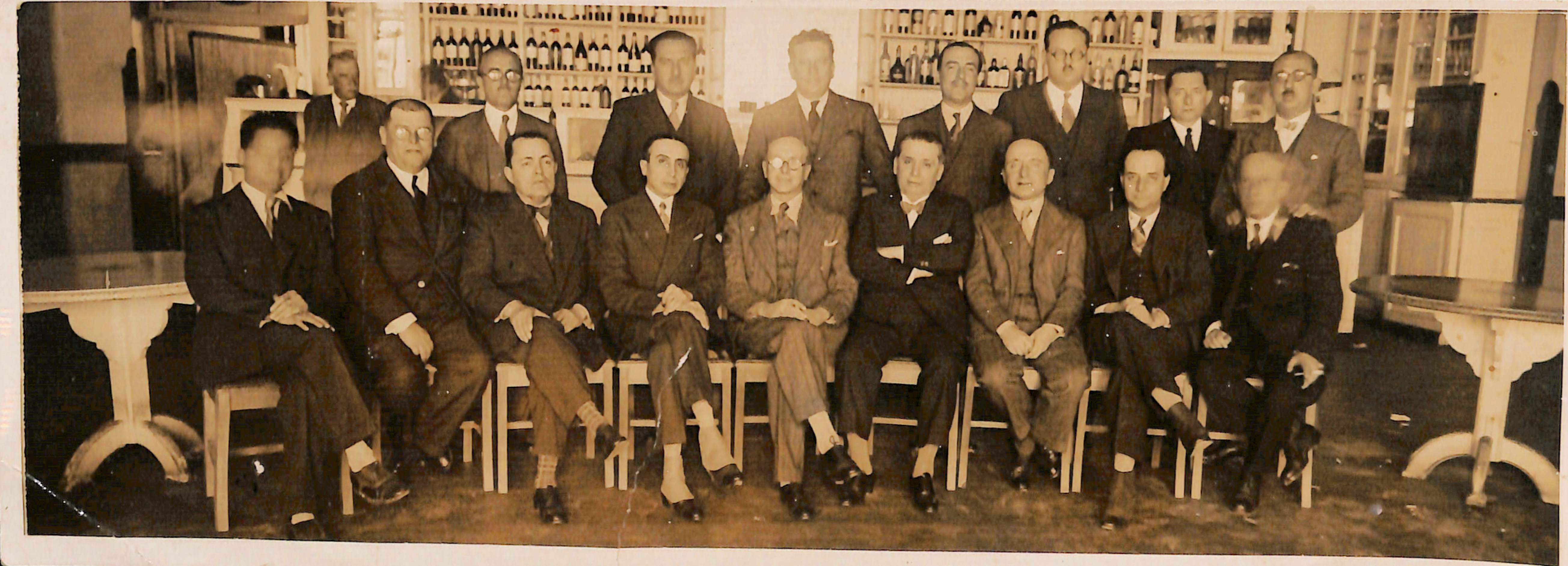 De izquierda a derecha se reconoce sentados al Dr. Honorio Delgado, Dr. Jorge Morrison, Dr. Baltazar Caravedo y Dr. Juan Francisco Valega.
