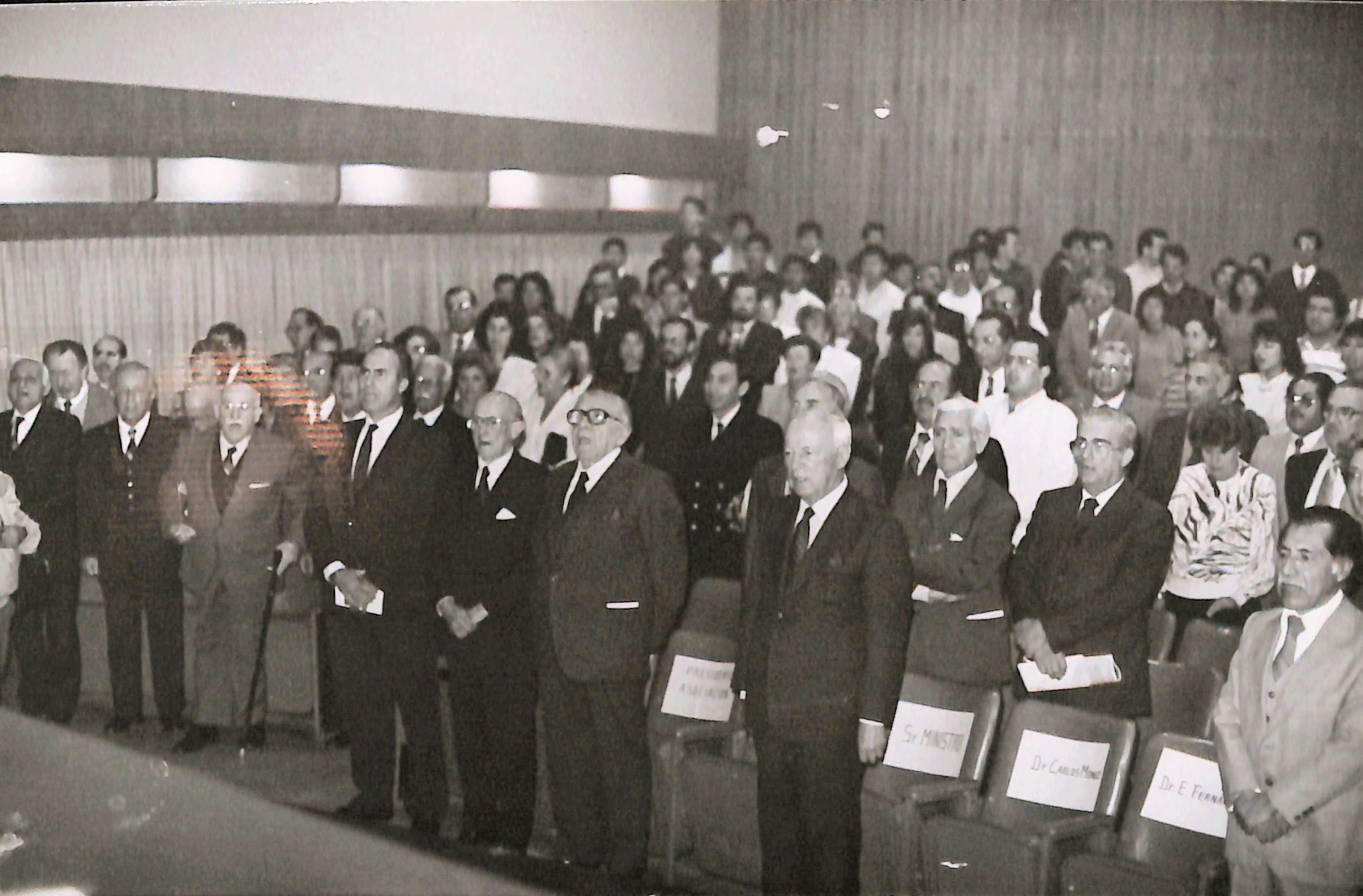 De pie de izquierda a derecha se reconoce Al Dr. Victor Baracco Gandolfo, Victor Puente Arnao y Homero Silva Diaz.