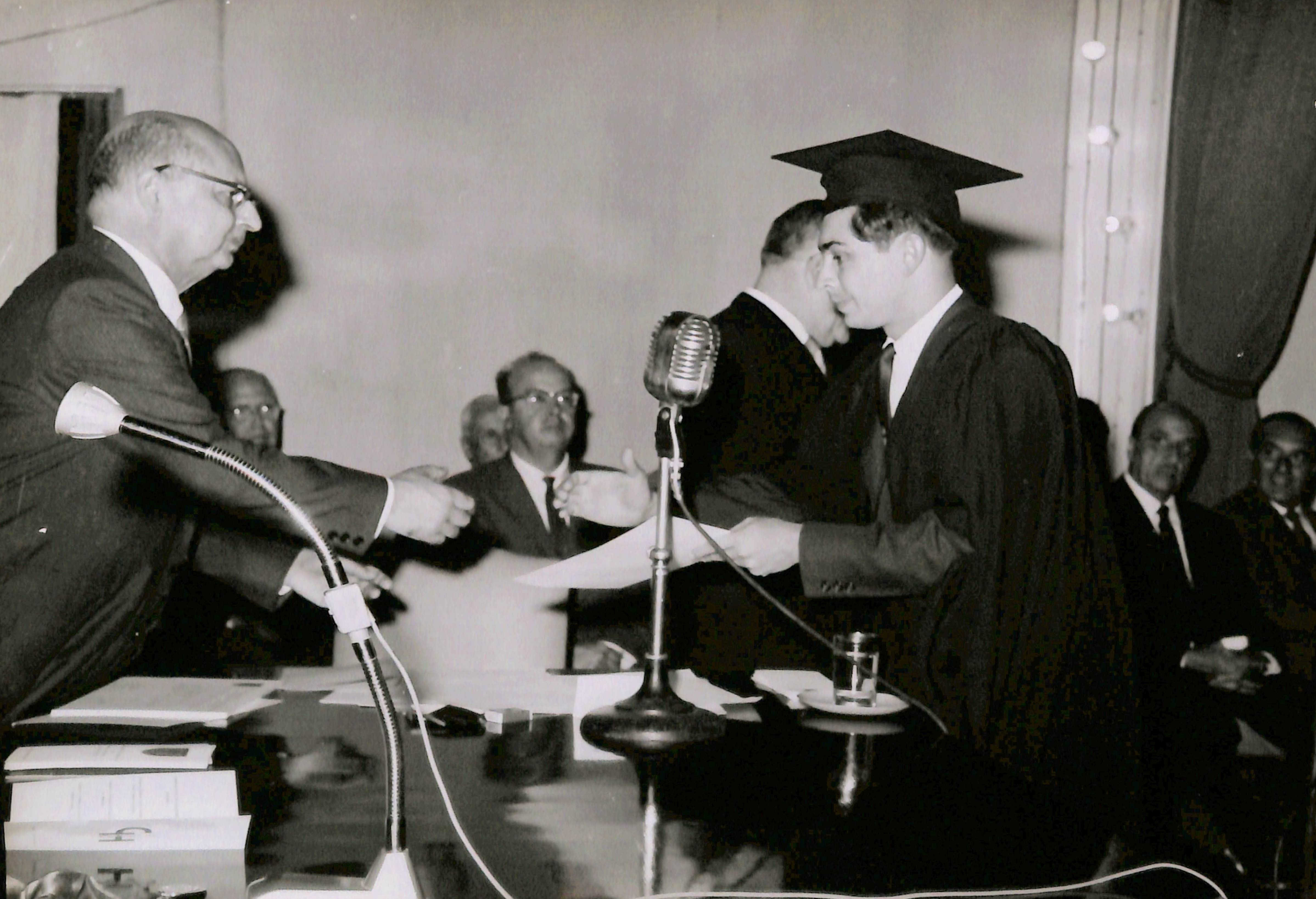Se parecia en la fotografía al Dr. Alberto Hurtado estrechando la mano de uno de los graduados