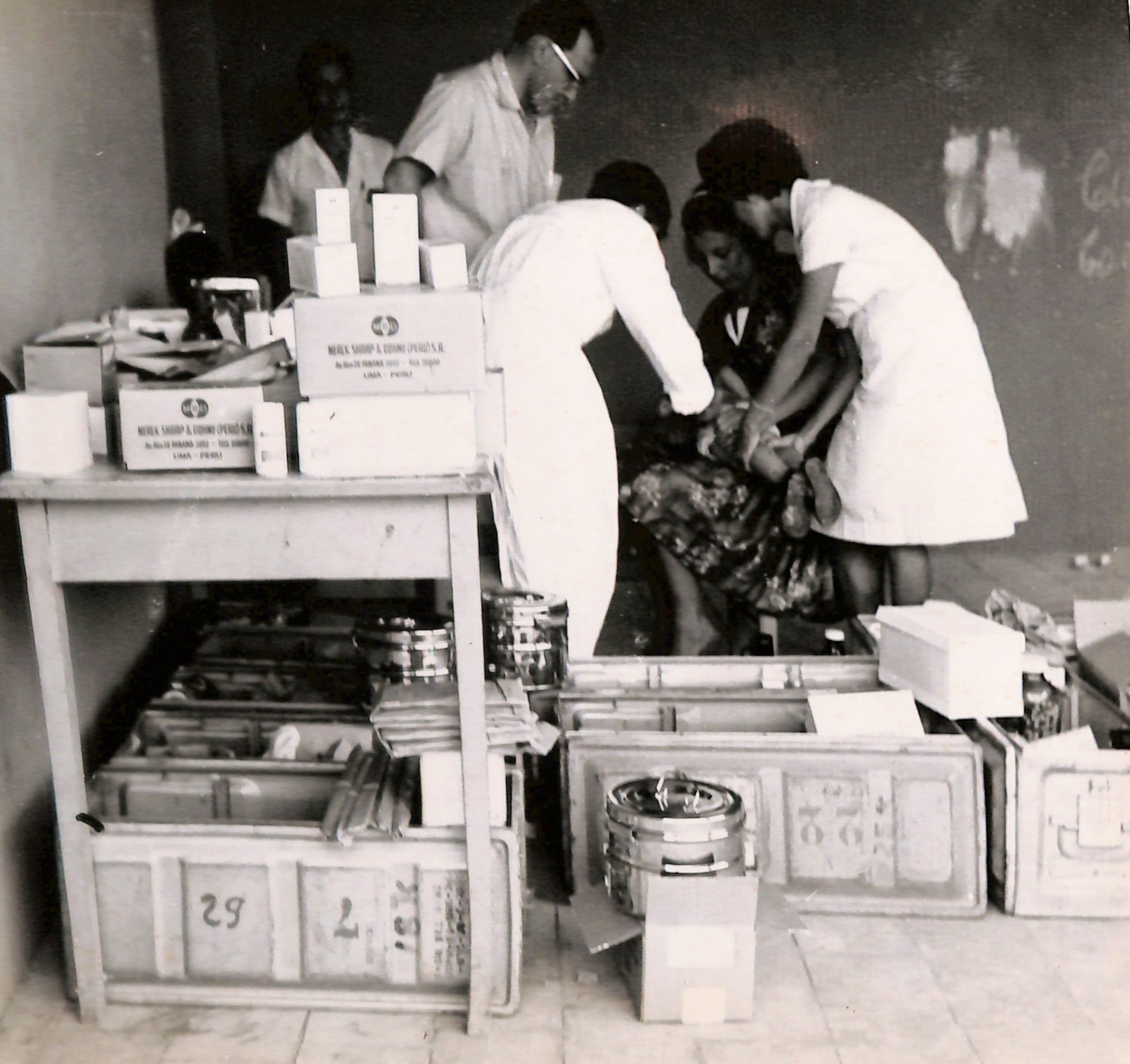 En la fotografía podemos apreciar al personal sanitario aplicando una inyección a un niño