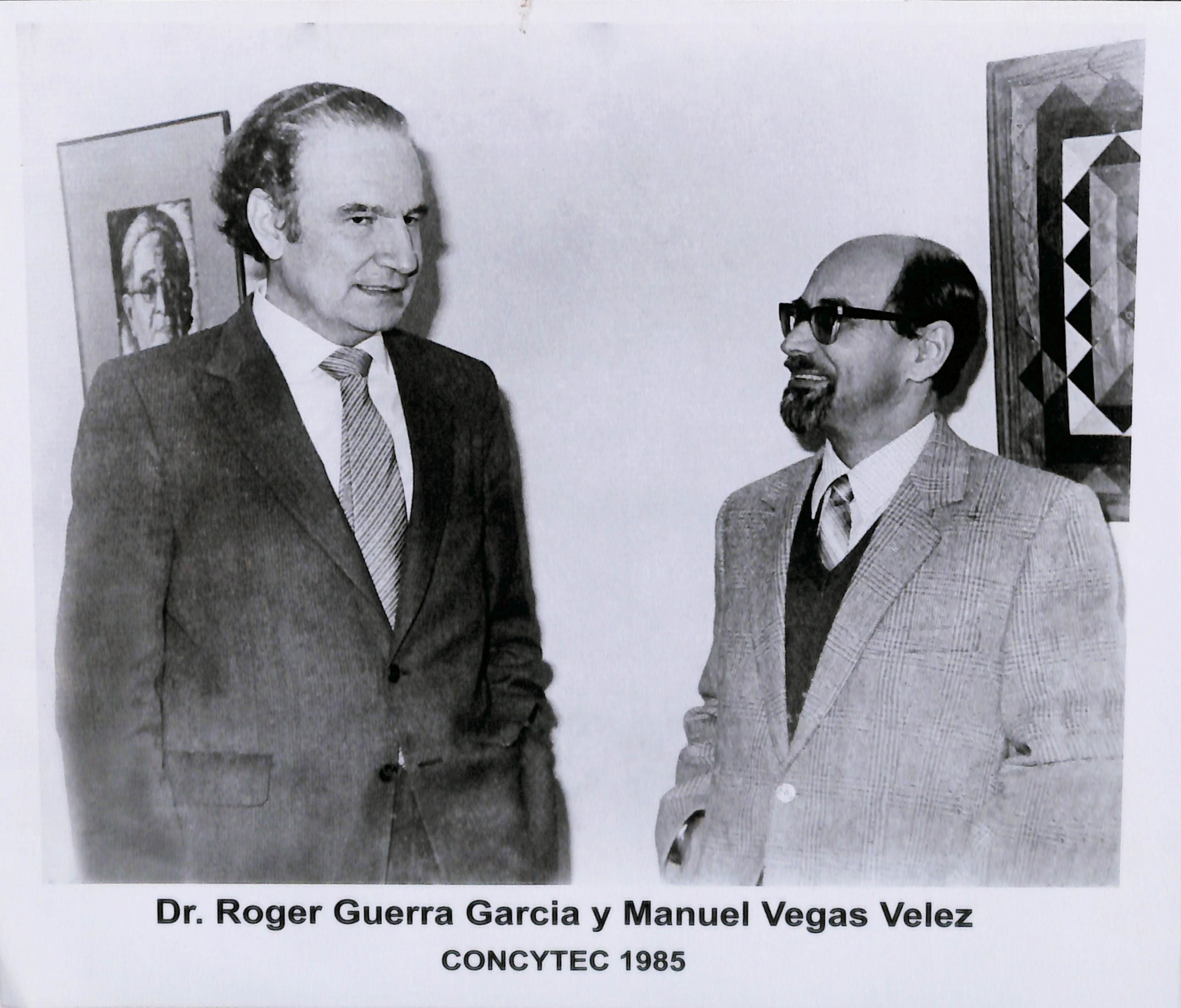 La fotografía representa en primer plano al Dr. Roger Guerra García y Manuel Vega Velez.