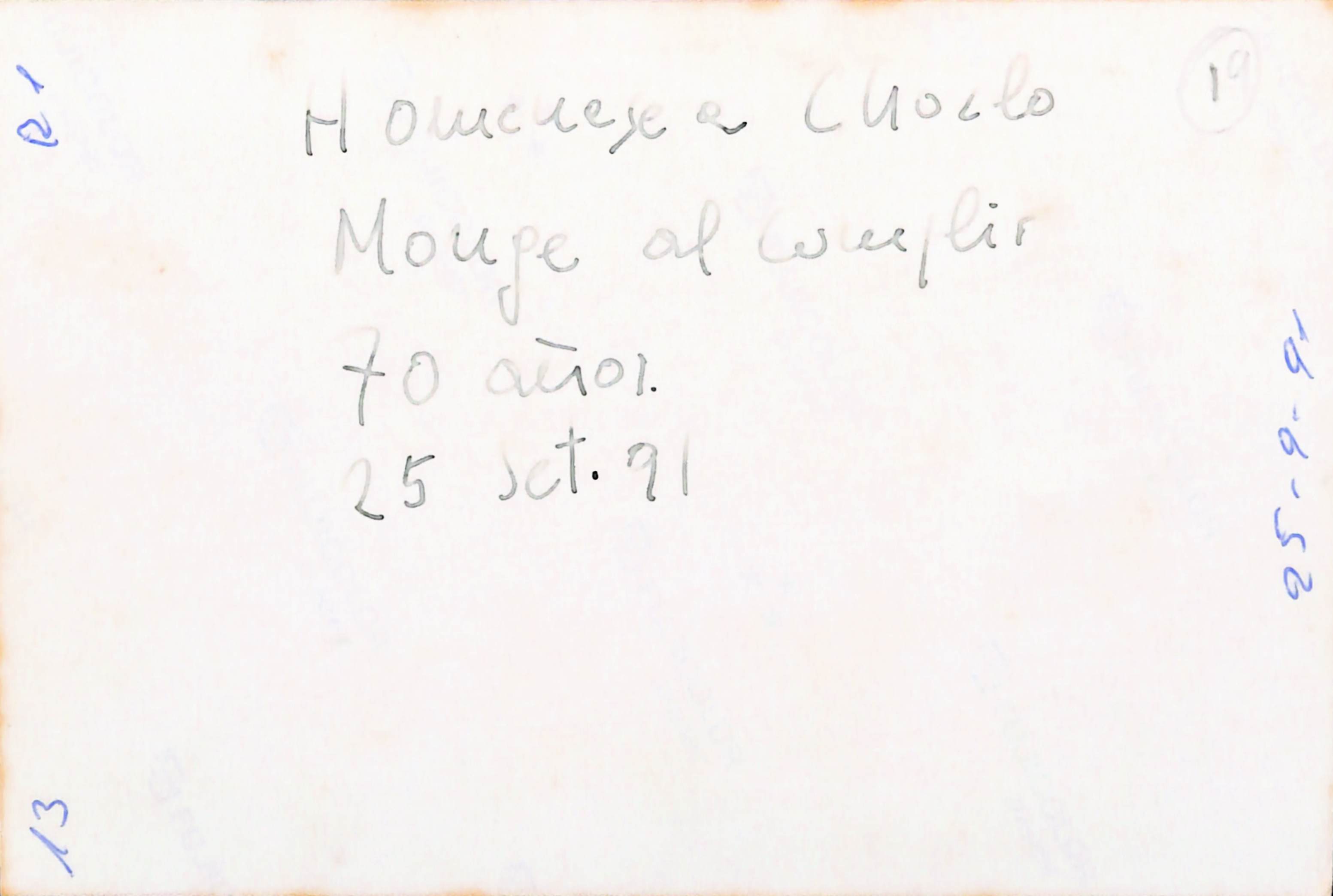 Fotografía que señala en la parte posterior señala: Homenaje a Choclo Monge al cumplir 70años. 25 set. 91