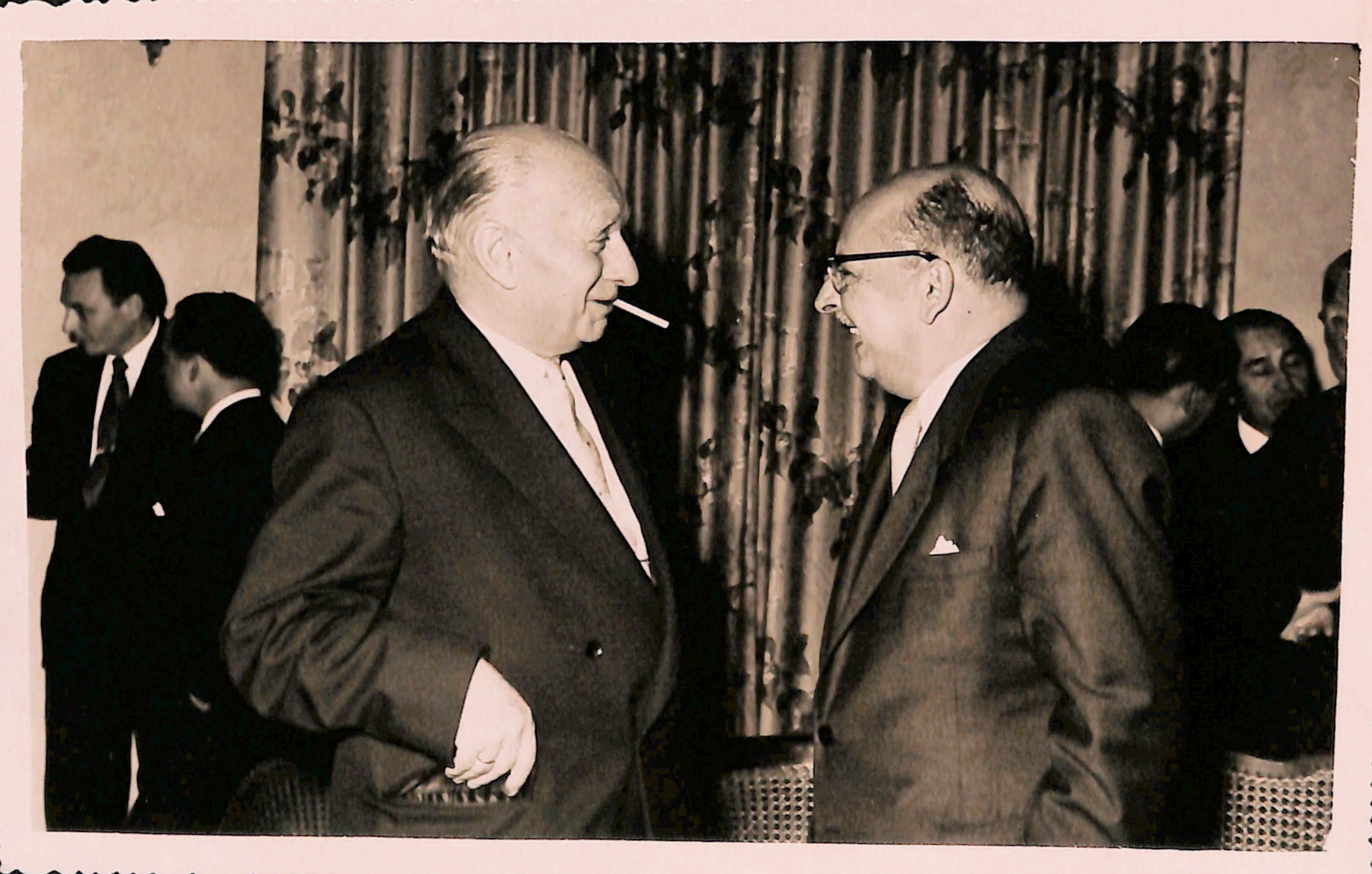 Dr. Alberto Hurtado de pie junto a una persona no identificada.