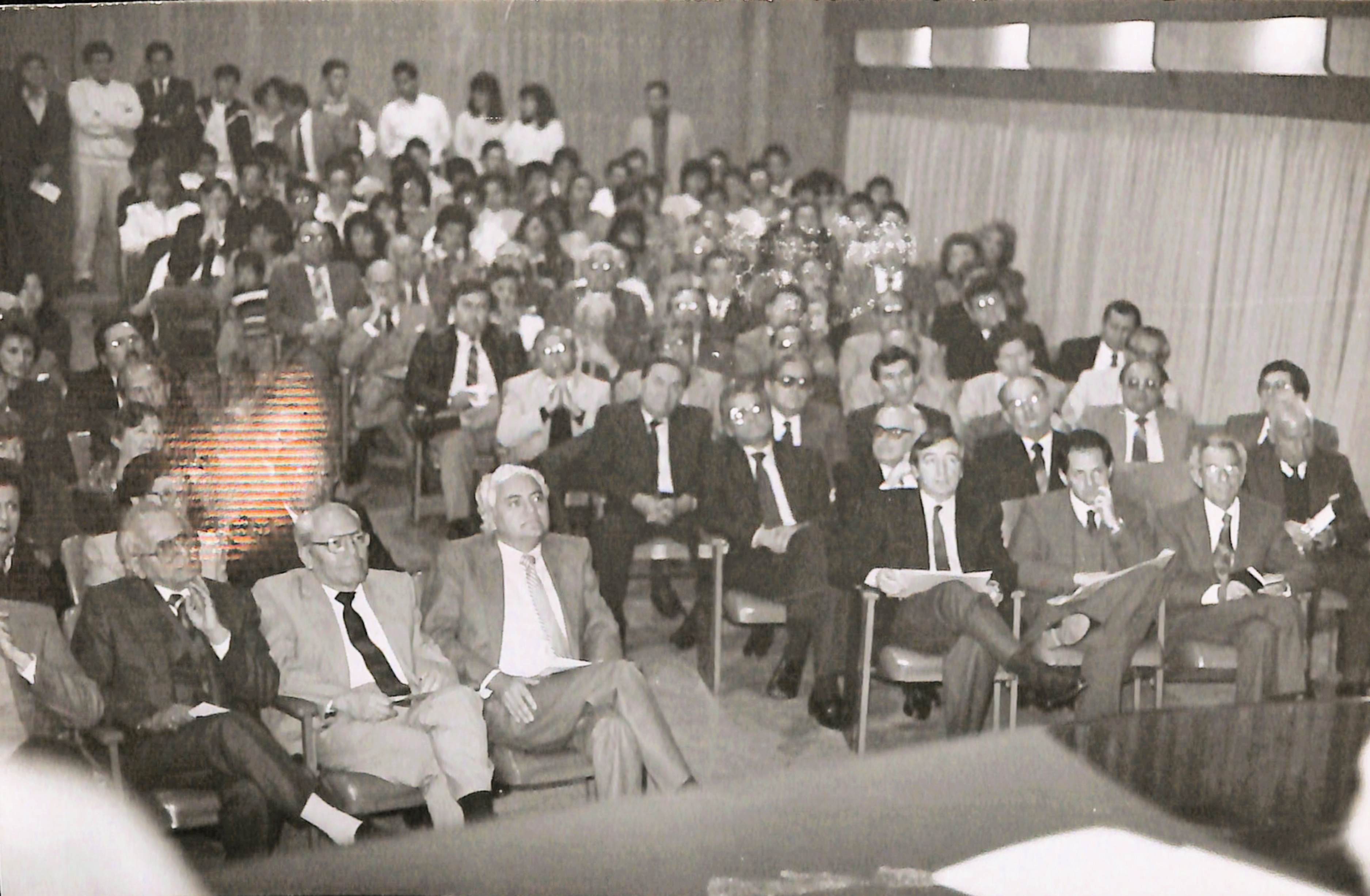 Se reconoce de izquierda a derecha sentados en la primera fila a Dr. Fernando Porturas, César Torre, Eduardo Barboza y Dr. Leopoldo Chaiappo.