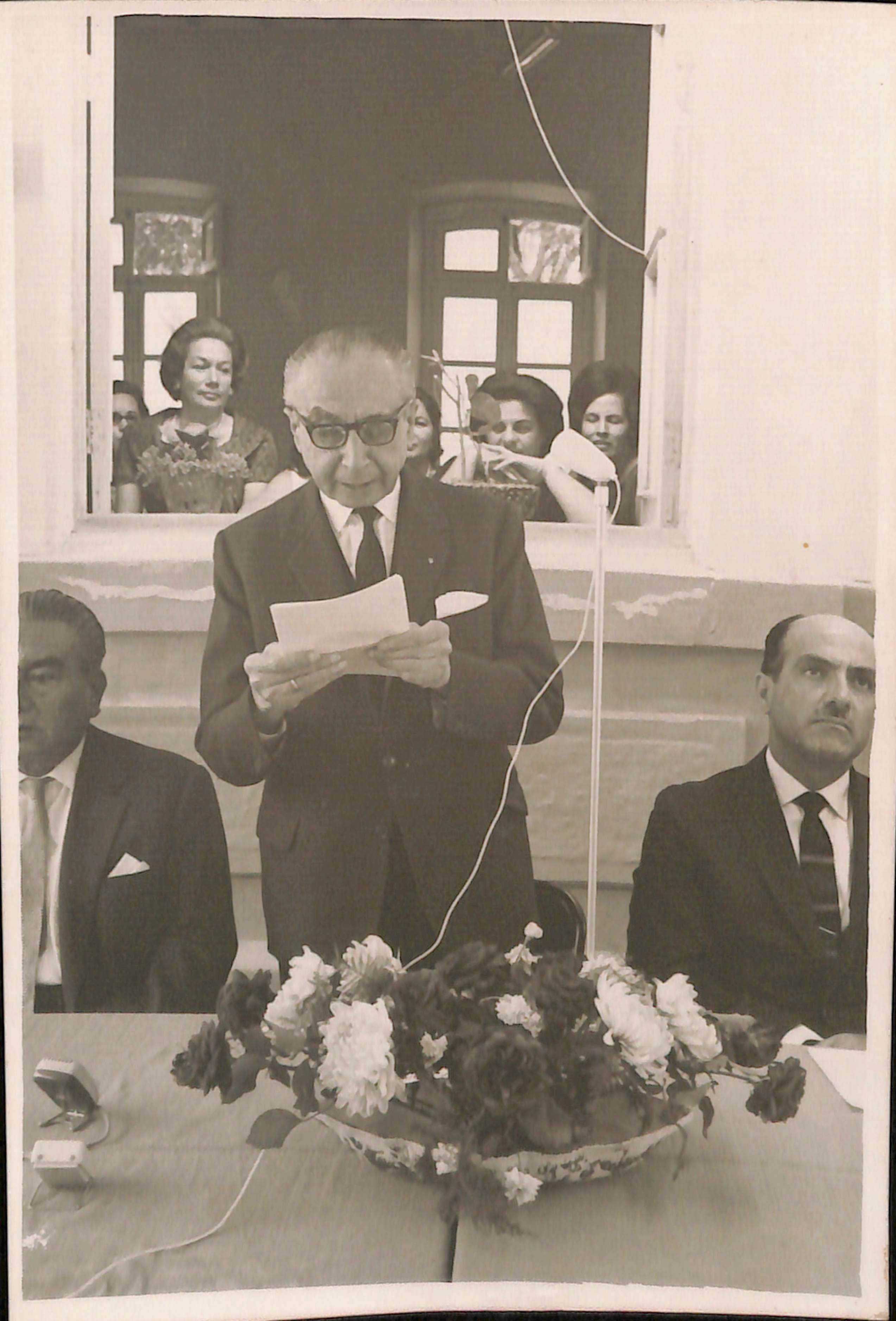 Dr. Honorio Delgado dando lectura a su discurso en el frontis del Hospital Victor Larco Herrera, Magdalena del Mar.
