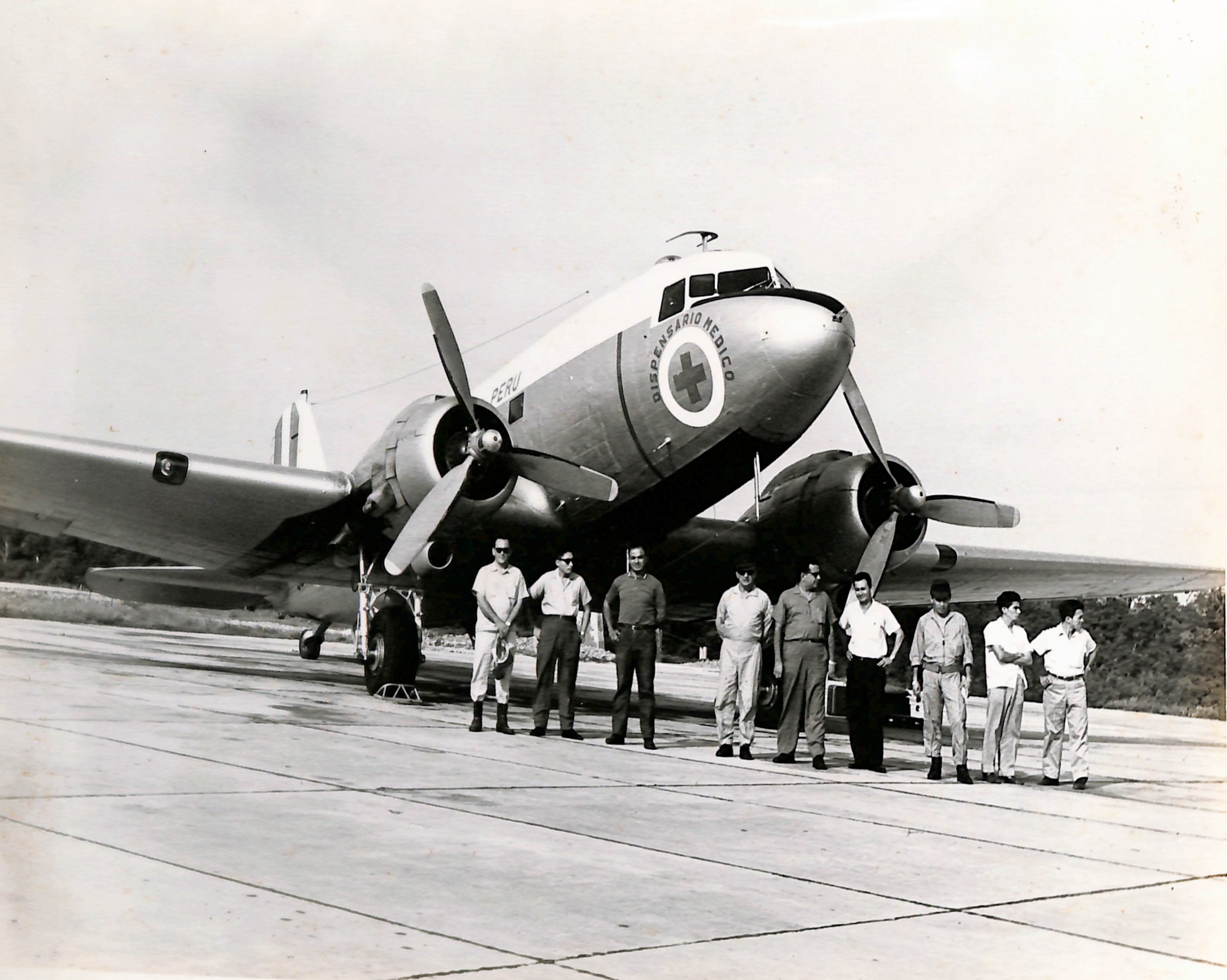 En la imagen se aprecia al personal a cargo de del avión de dispensario médico a punto de salir.