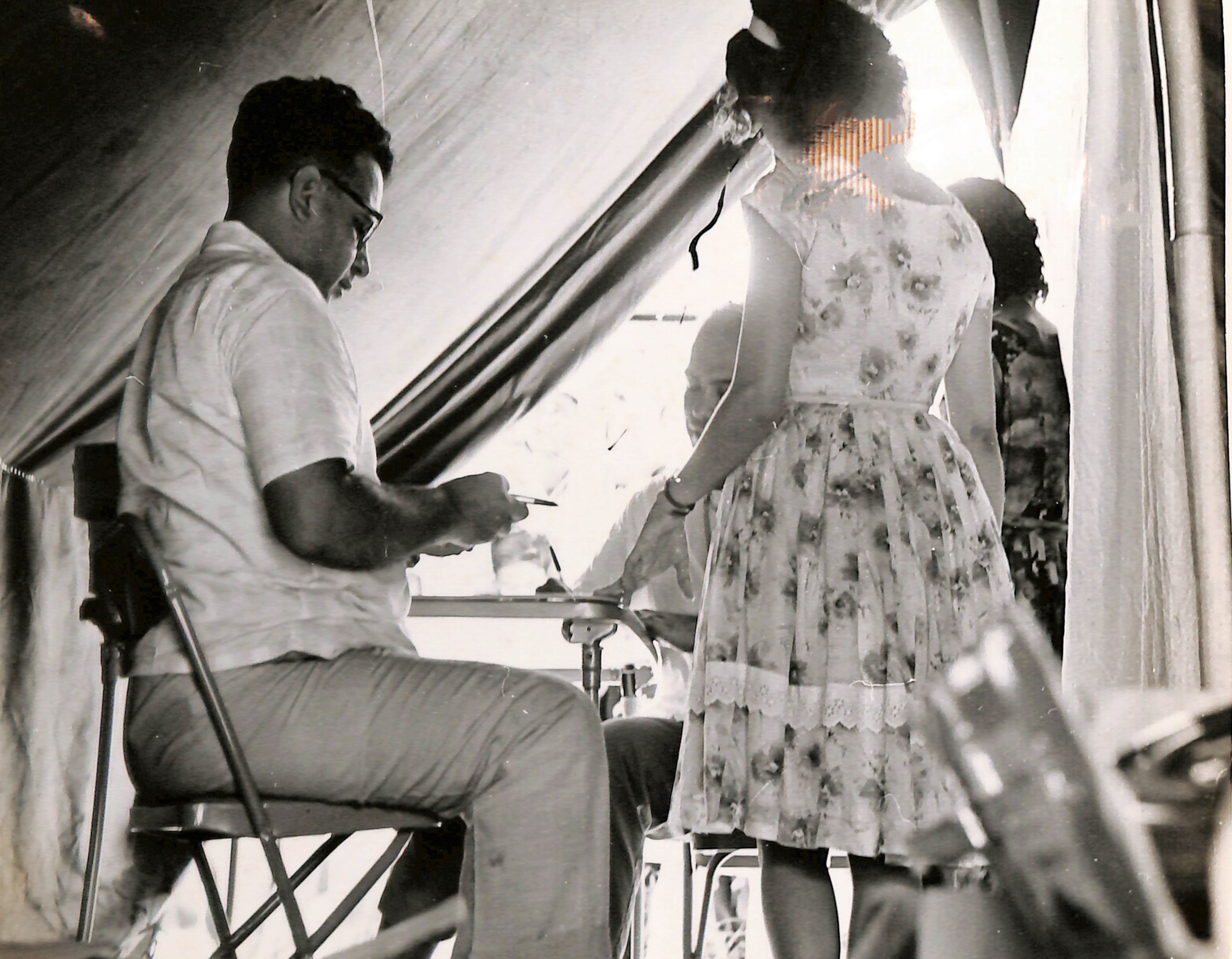 En la fotografía se aprecia al Dr. Max Benzaquen en primer plano y en el extremo derecho al Dr. Jorge Oyarce, dando consulta a una paciente.