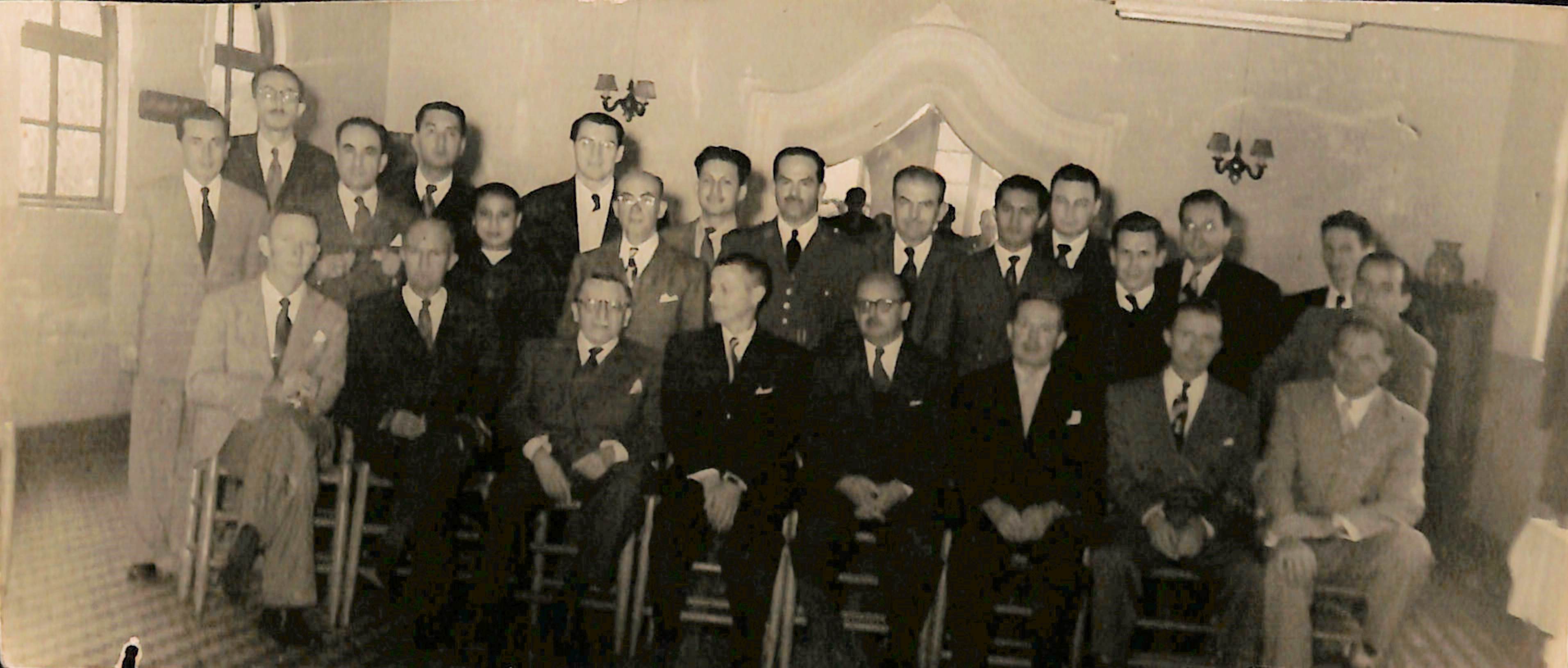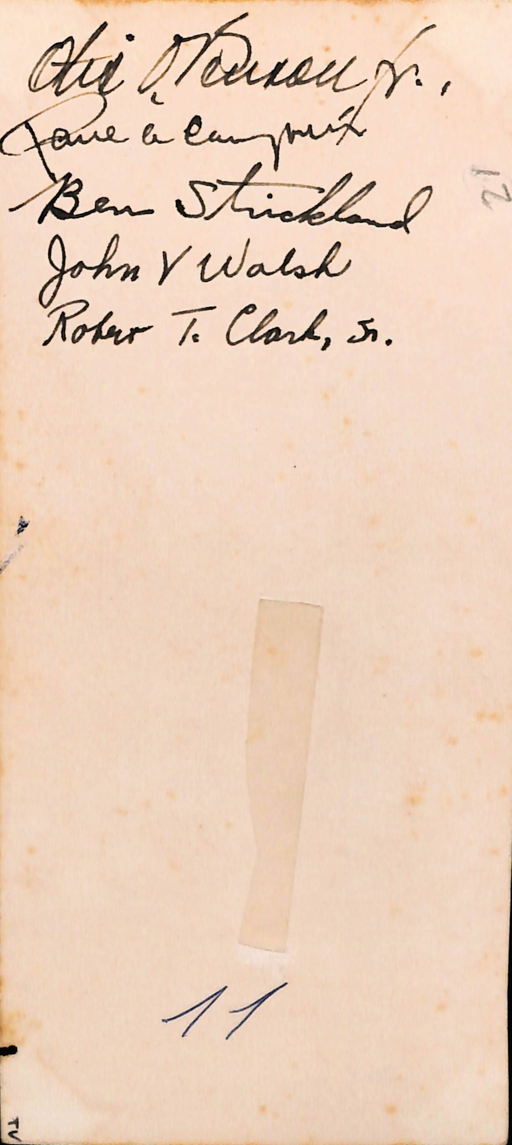 Foto con una inscripción en el reverso que señala: "Pamela Campeán (¿?), Ben Stickland, John V Walsh, Robert T Clark Jr"