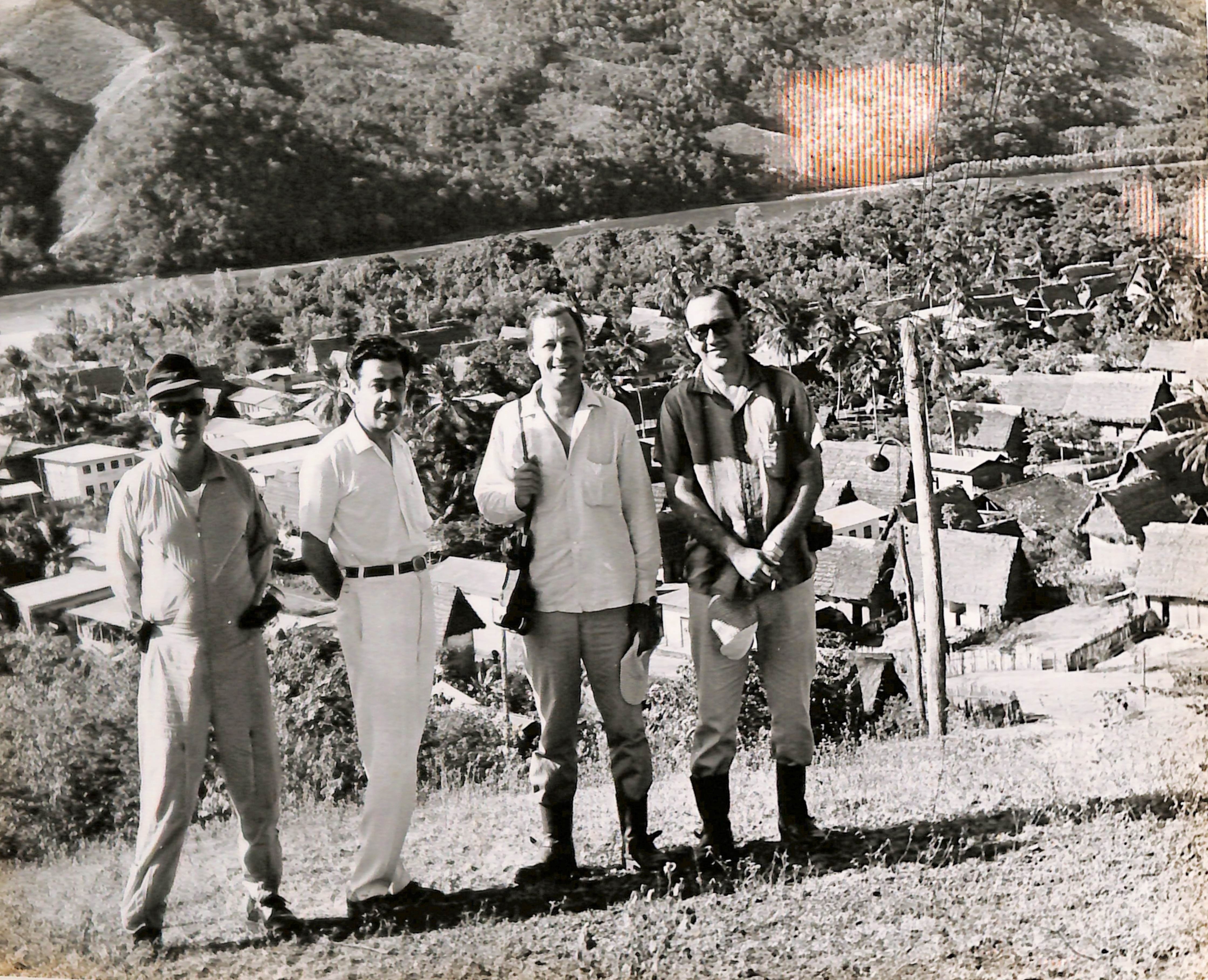 En la fotografía se aprecia de izquierda a derecha al Mayor de la F.A.P. José Aste, Dr. Raúl Schmidt, jefe de área de salud de la región San Martín, al fotografo Jacques de Ridder y el supervisor M.S.D Alfredo del Pino