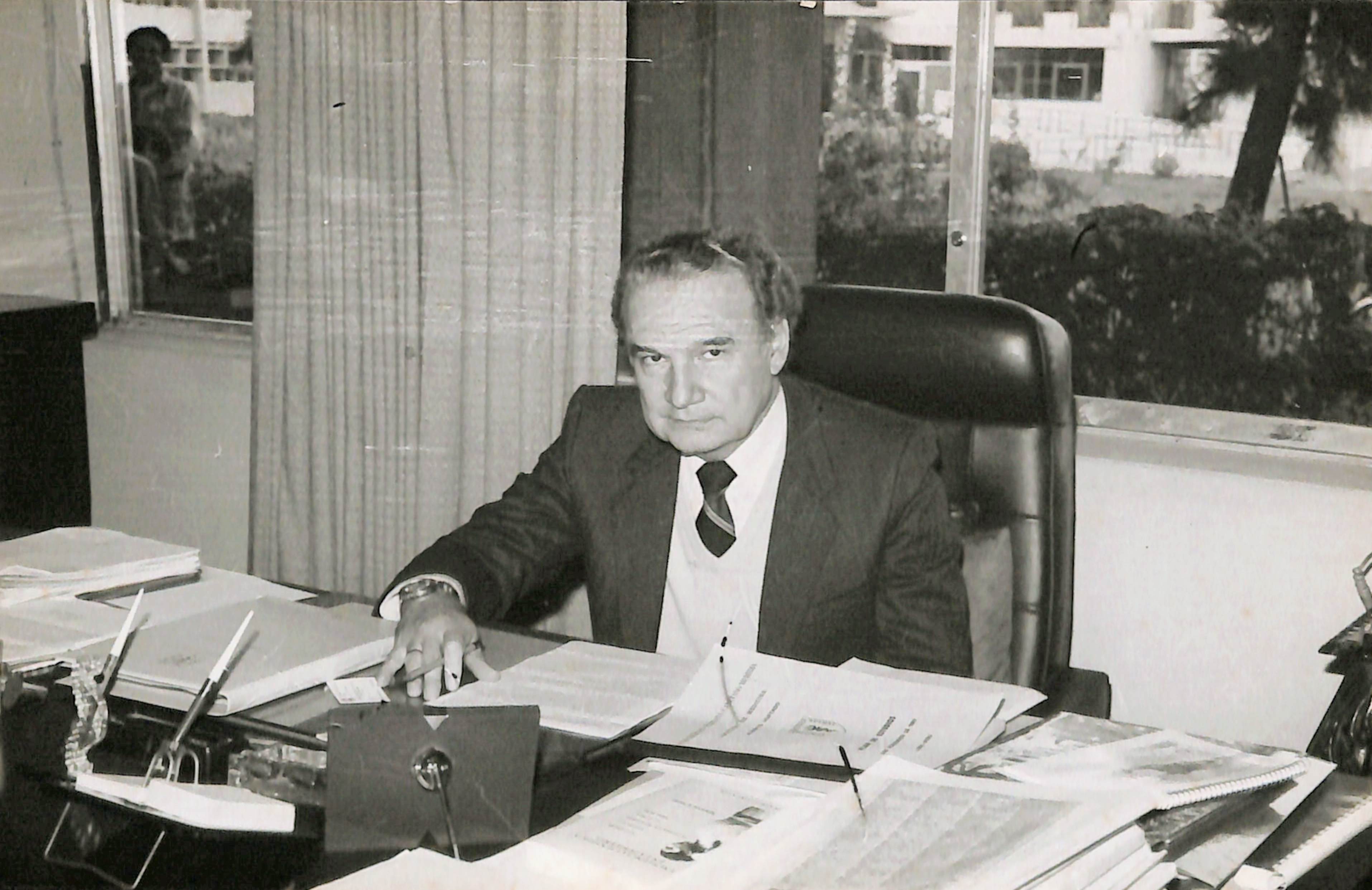 En primer plano se aprecia al Dr.Roger Guerra García Cueva sentado en su oficina en las instalaciones de la UPCH.