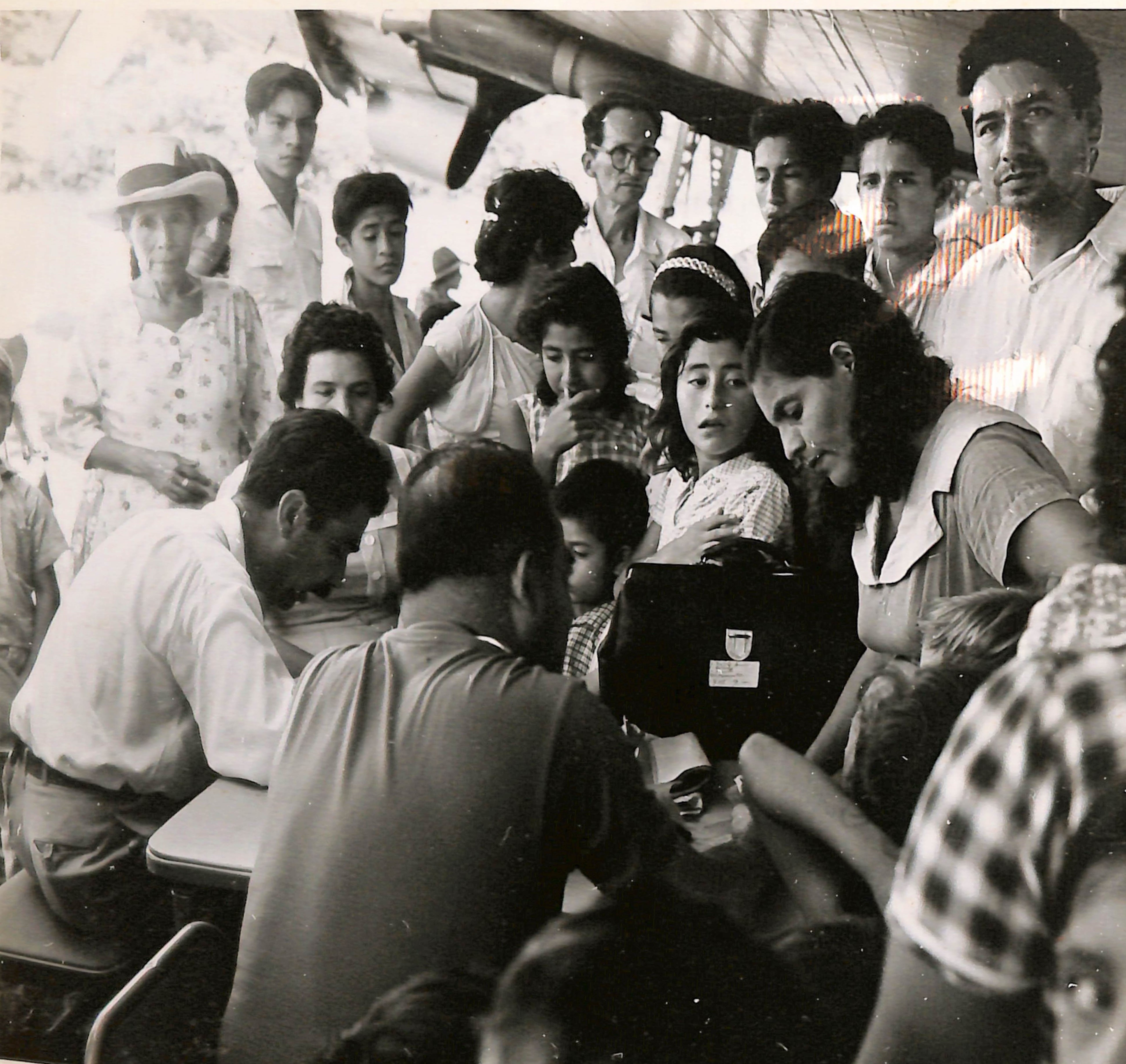 En la fotografía se aprecia al Dr. Jorge Oyarce y Raúl Schmidt dando consulta a la población de Uchiza.