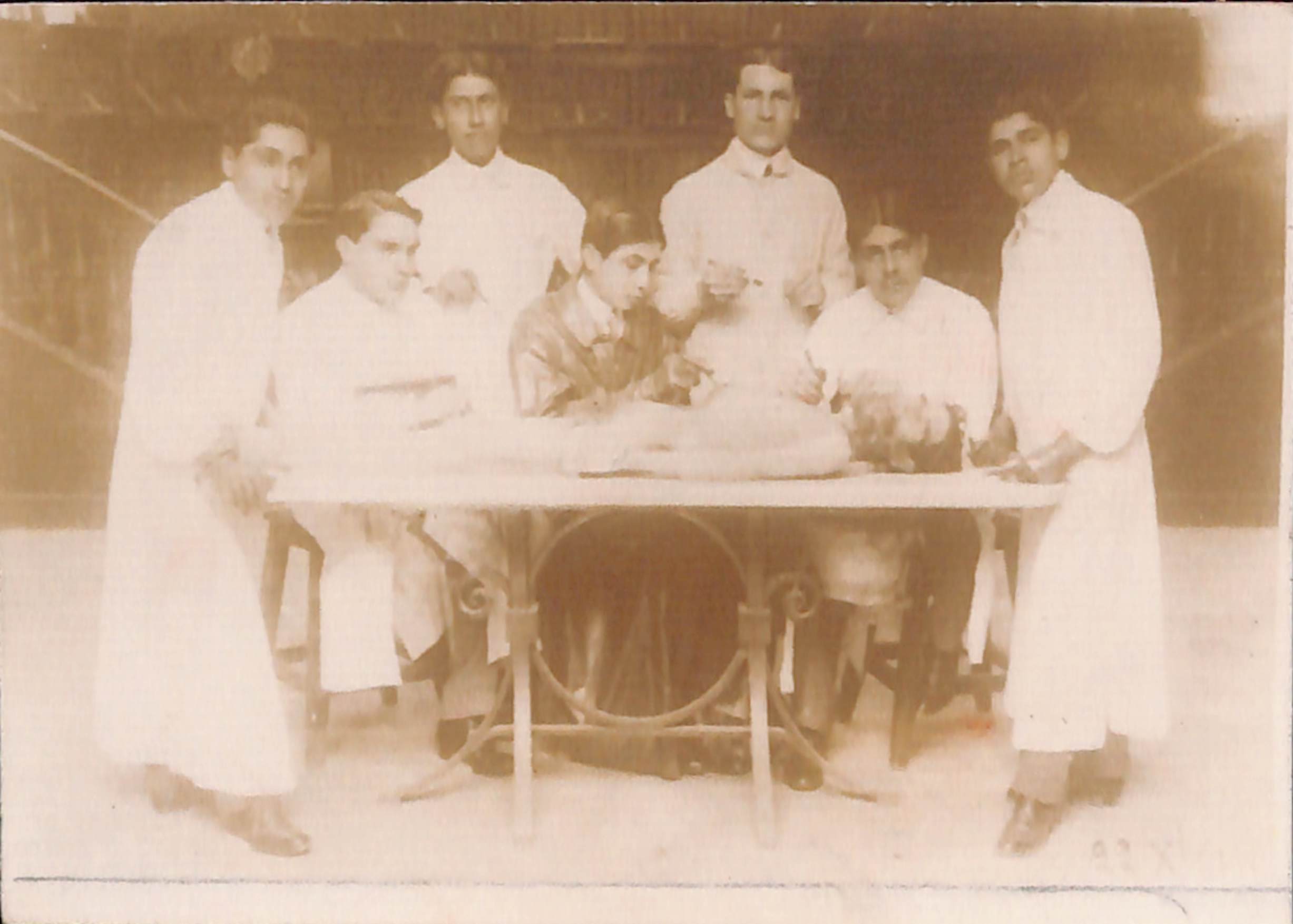 Dr. Honorio Delgado en el sector de anatomía humana del anfiteatro anatómico de la Facultad de Medicina de la Universidad Nacional Mayor de San Marcos.