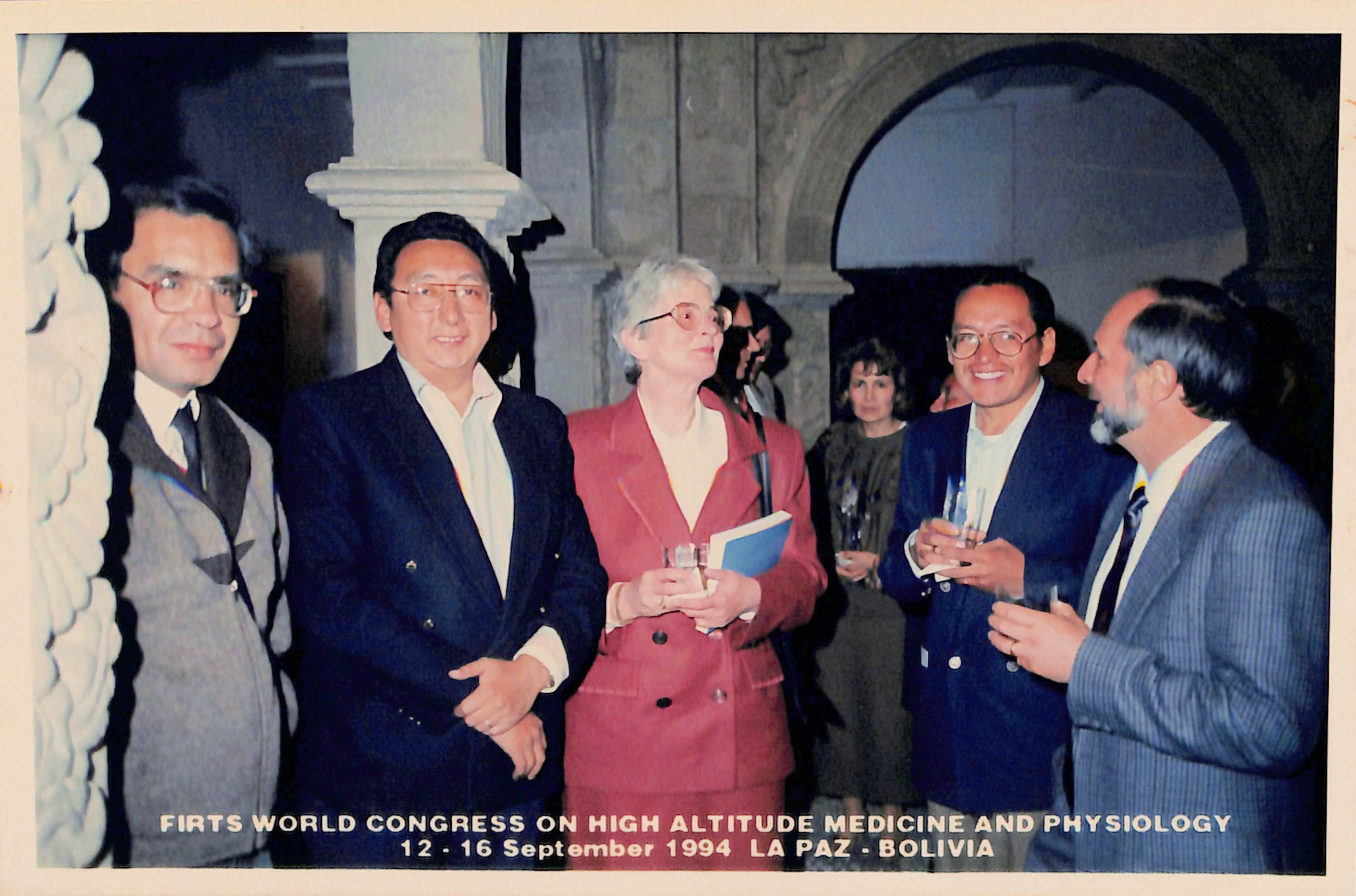 En la fotografía de izquierda a derecha se reconoce al Dr. Arturo Villena y al Dr. Gustavo Gonzales en el primer congreso mundial de medicina y fisiología de altura, llevado a cabo del 12 al 16 de setiembre en La Paz - Bolivia
