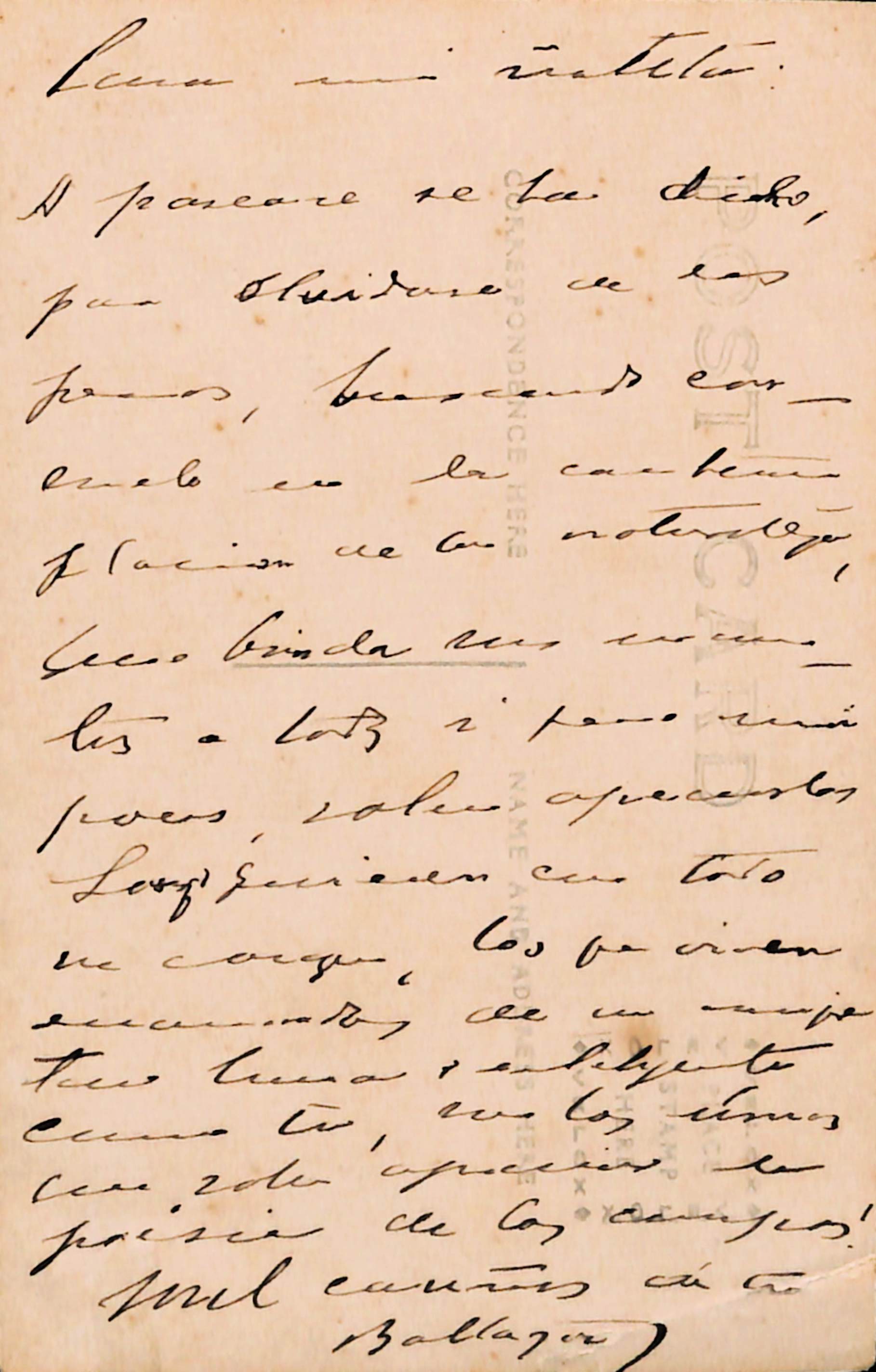 "H/ M…, 10 /XI 913. Para mi ñatita: A pasearce se"