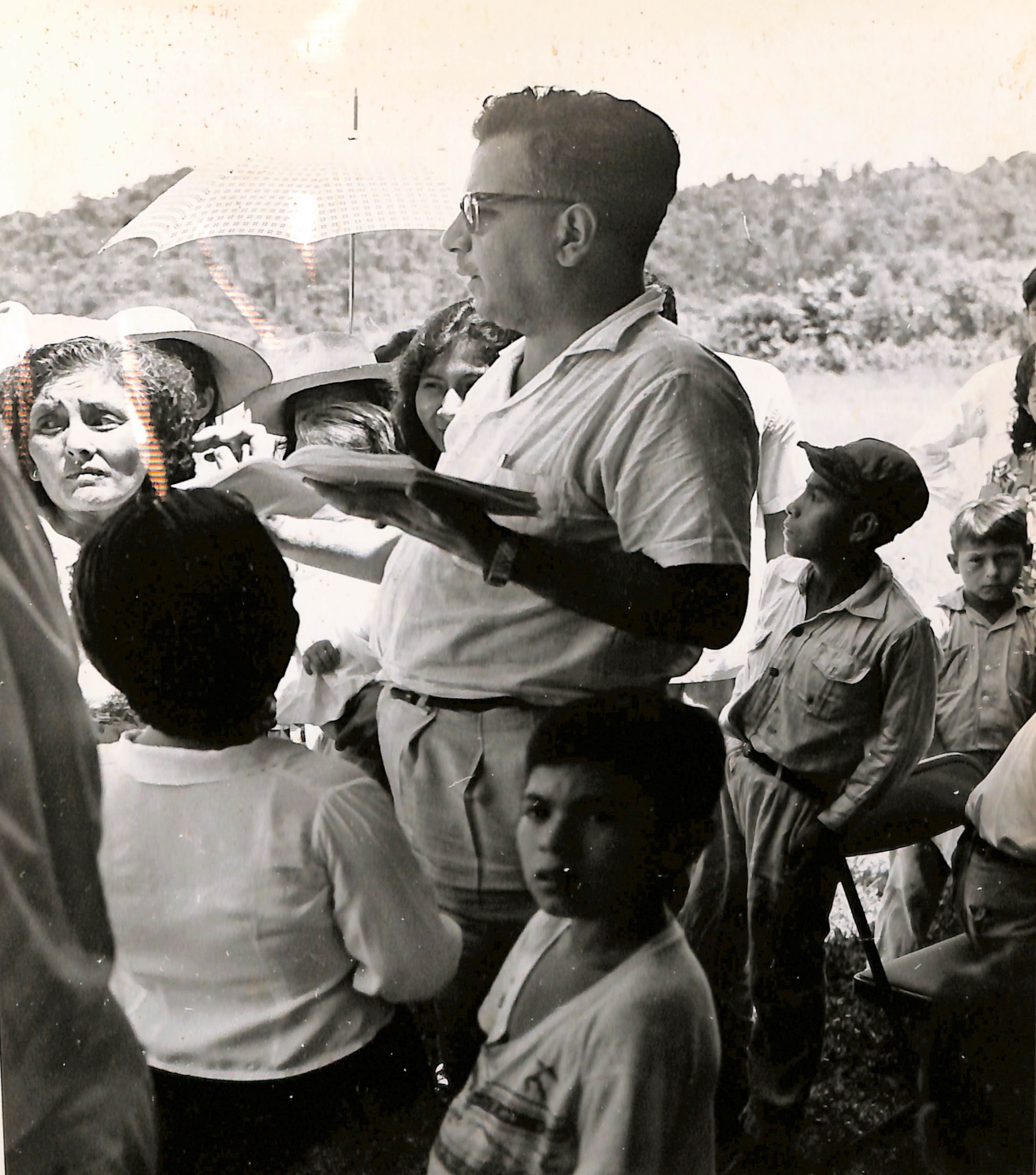 En la fotografía se aprecia al Dr. Max Benzaquen conversando con la poblacion de Uchiza.