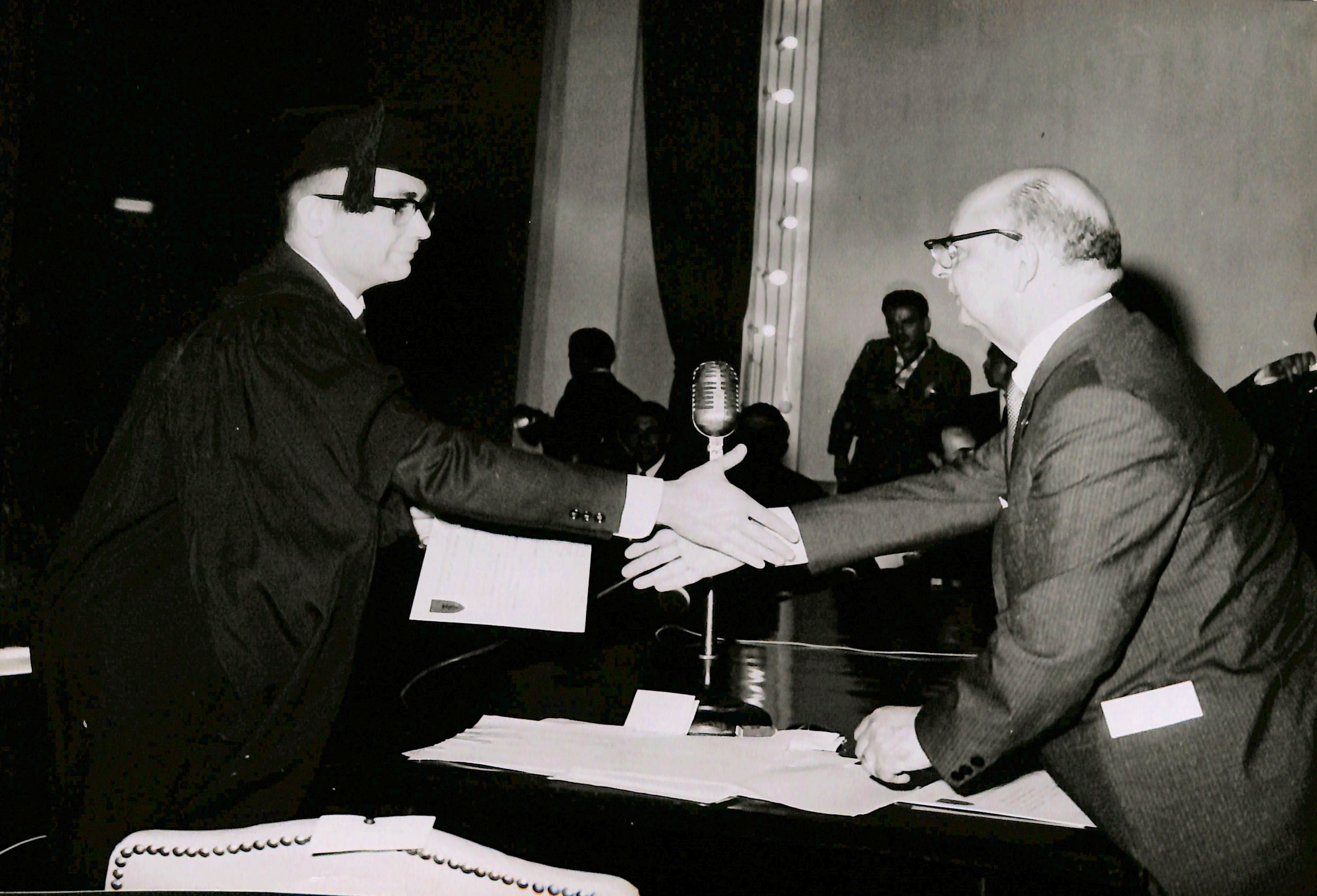 Se parecia en la fotografía al Dr. Alberto Hurtado estrechando la mano de uno de los graduados