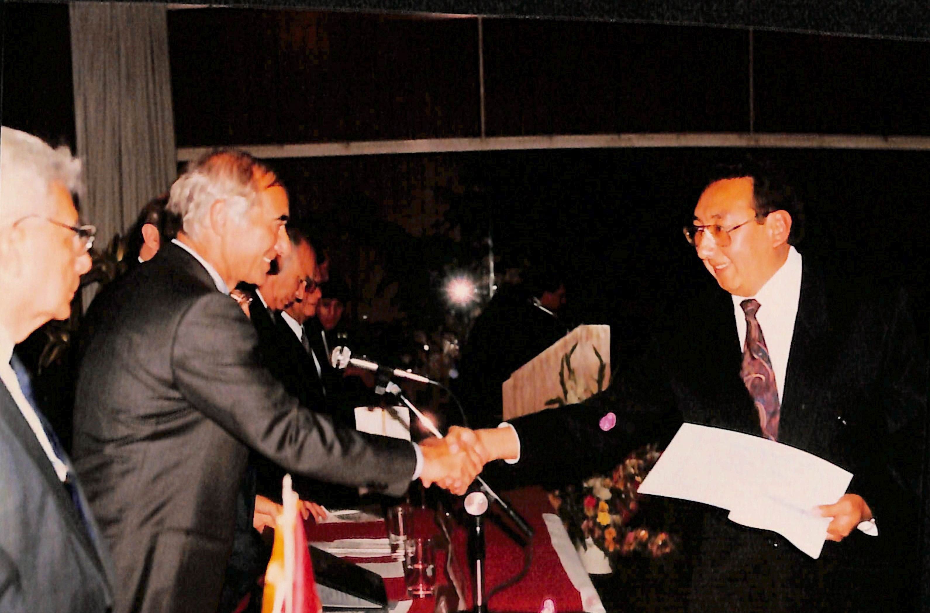 El Dr. Gustavo Gonzales en la saludando a los miebros de la mesa principal.
