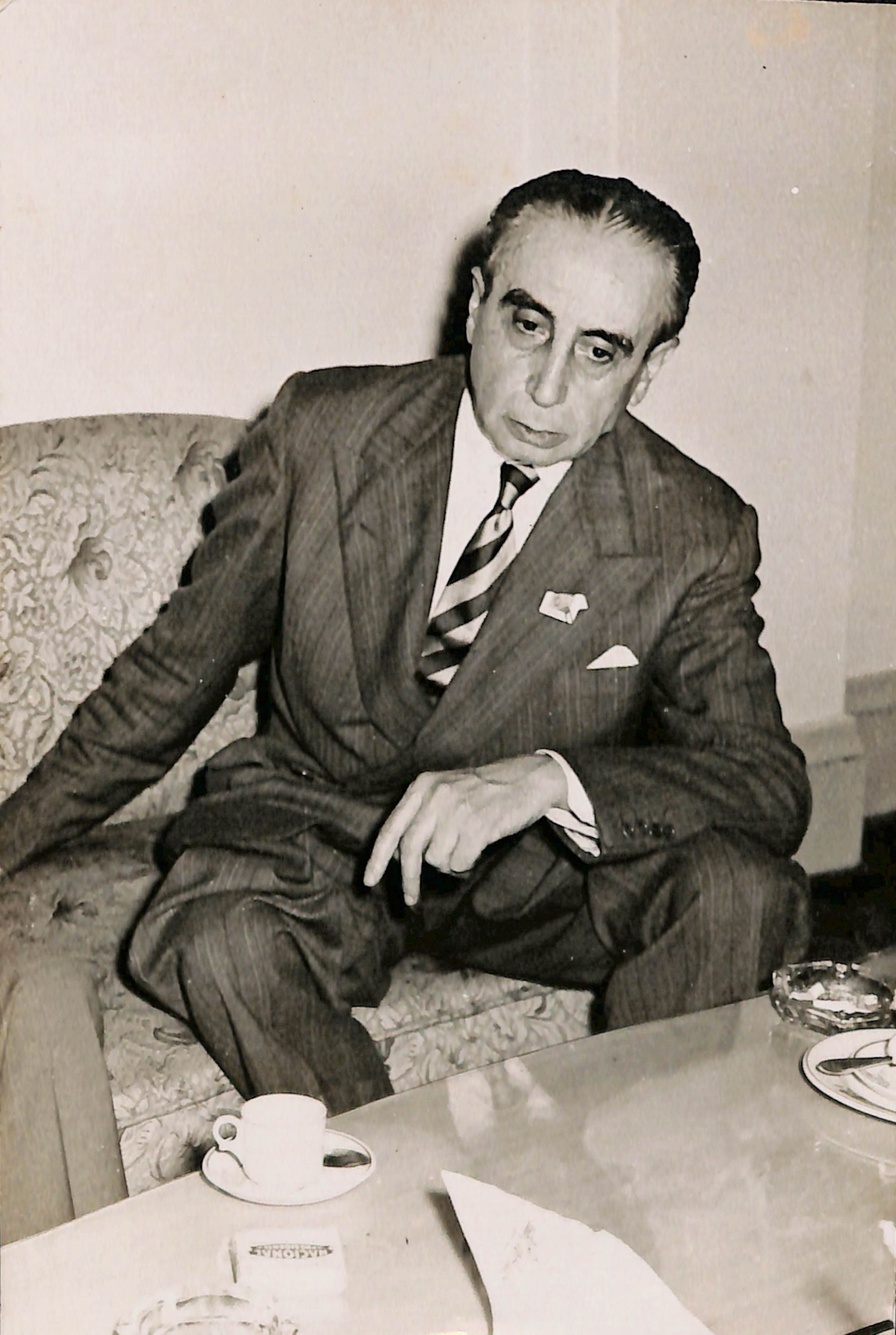 Dr. Honorio Delgado sentado de perfil, en el reverso indica: "Honorio Delgado."