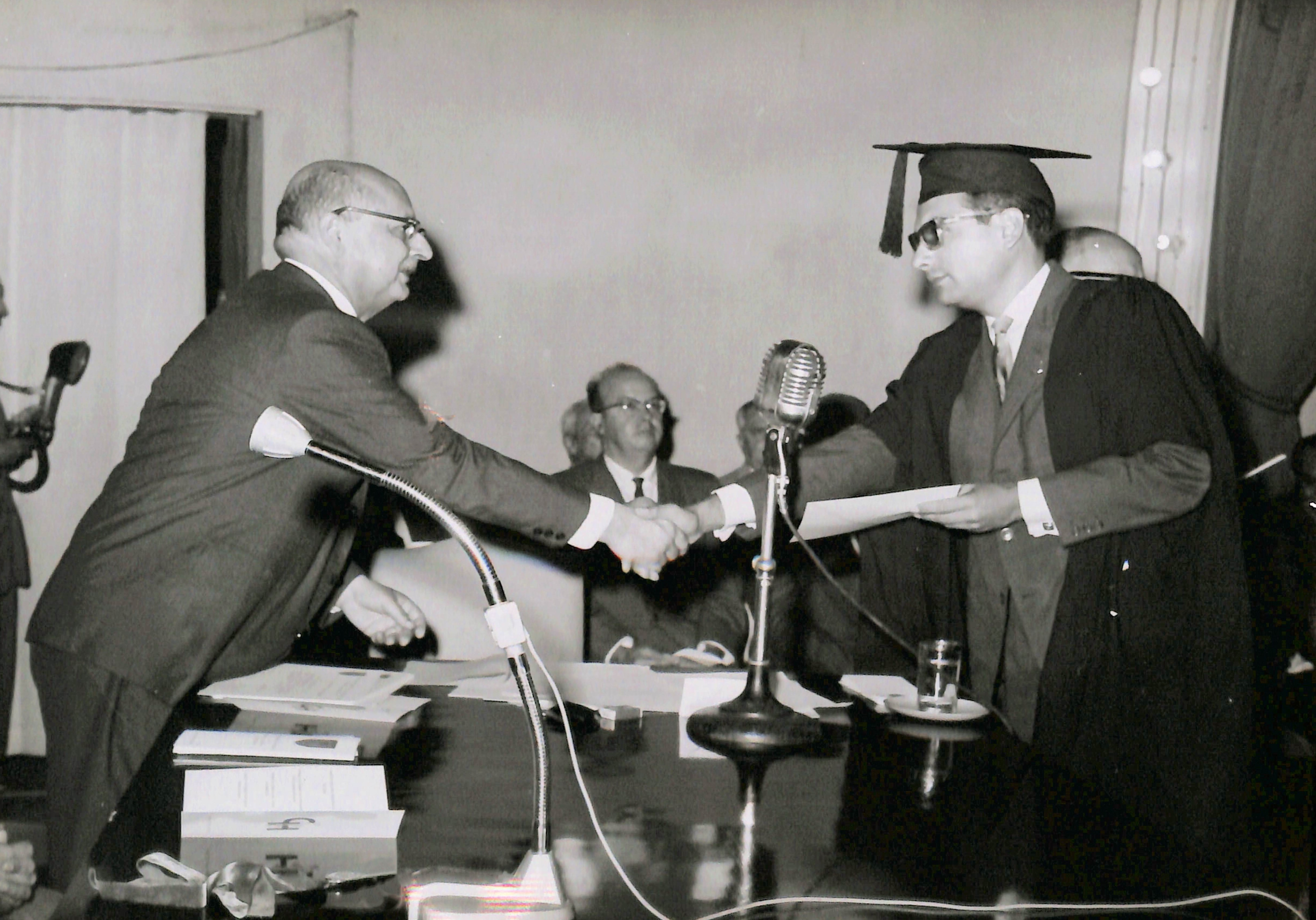 Se parecia en la fotografía al Dr. Alberto Hurtado estrechando la mano de uno de los graduados