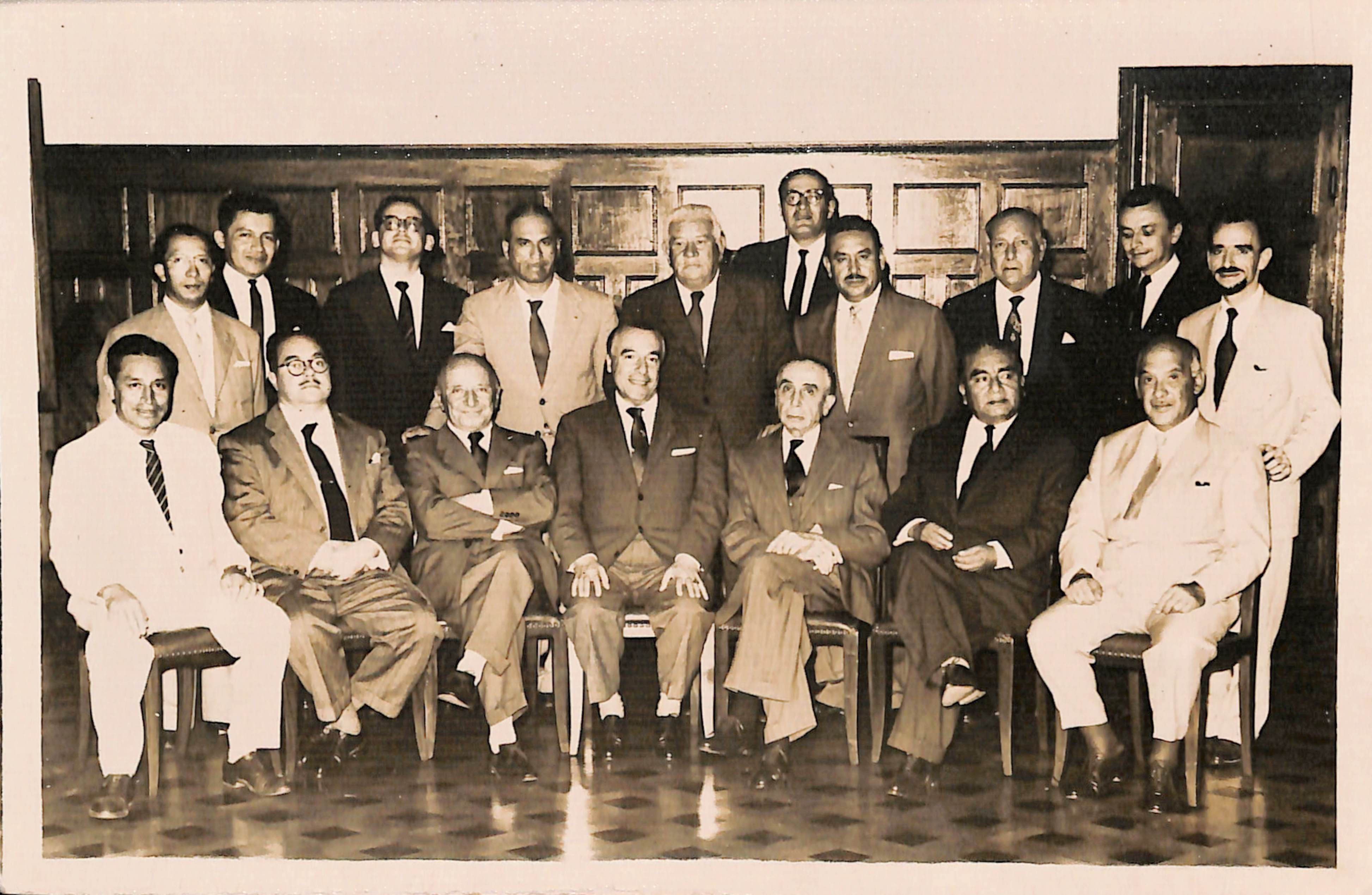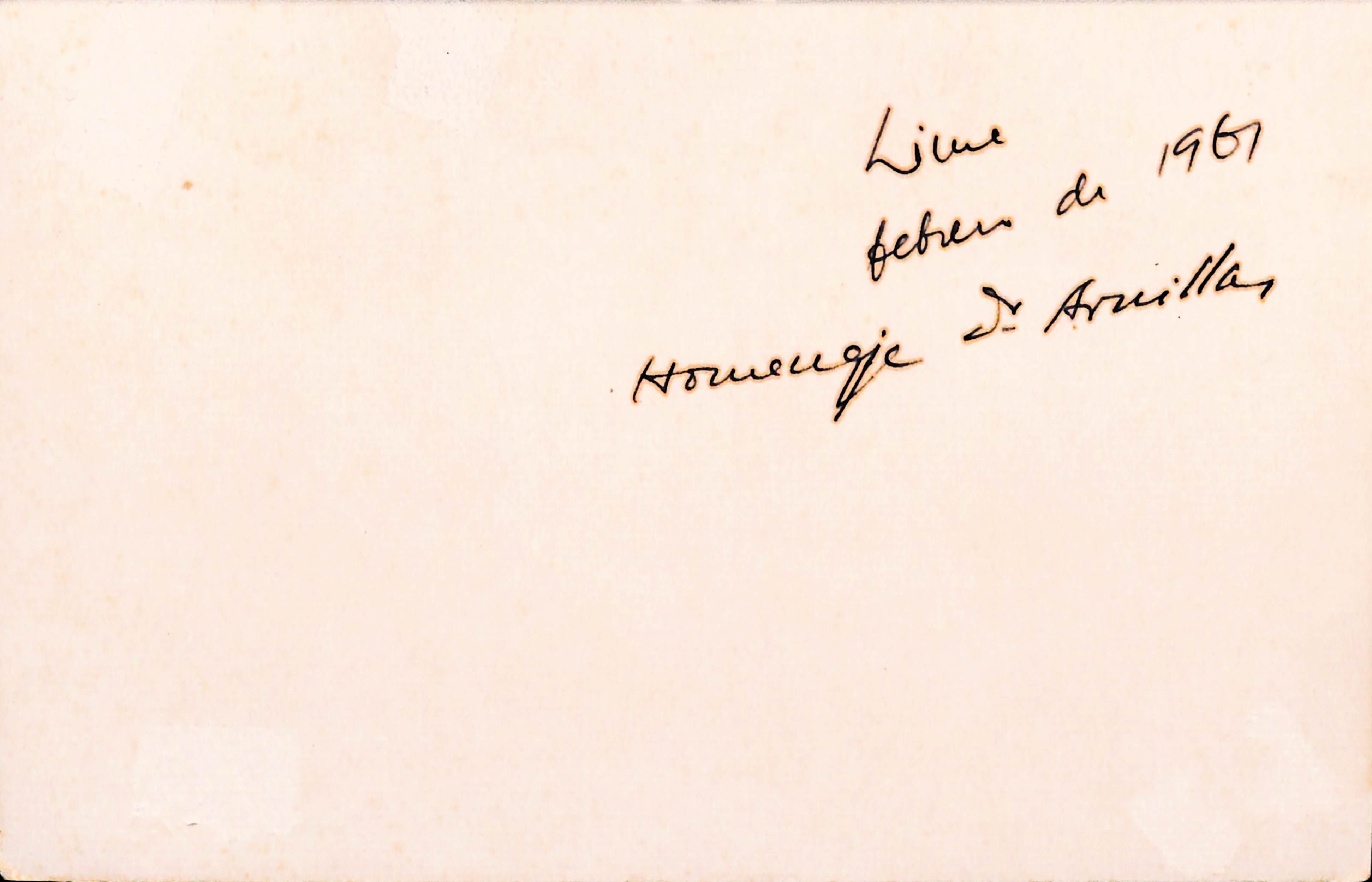 Foto en la que se reconoce en primer plano, sentados de izquierda a derecha, al Dr. Humberto Rotondo, Dr. Juan Francisco Valega, Dr. José Max Arnillas, Dr. Honorio Delgado y Dr. Federico Sal y Rosas, en segundo plano de pie el tercero de izquierda a derecha el Dr. Javier Mariátegui y en el extremo derecho el Dr. Mariano Querol. En el reverso de la fotografía escrito señala: "Lima febrero de 1961 Homenaje Dr. Arnillas."