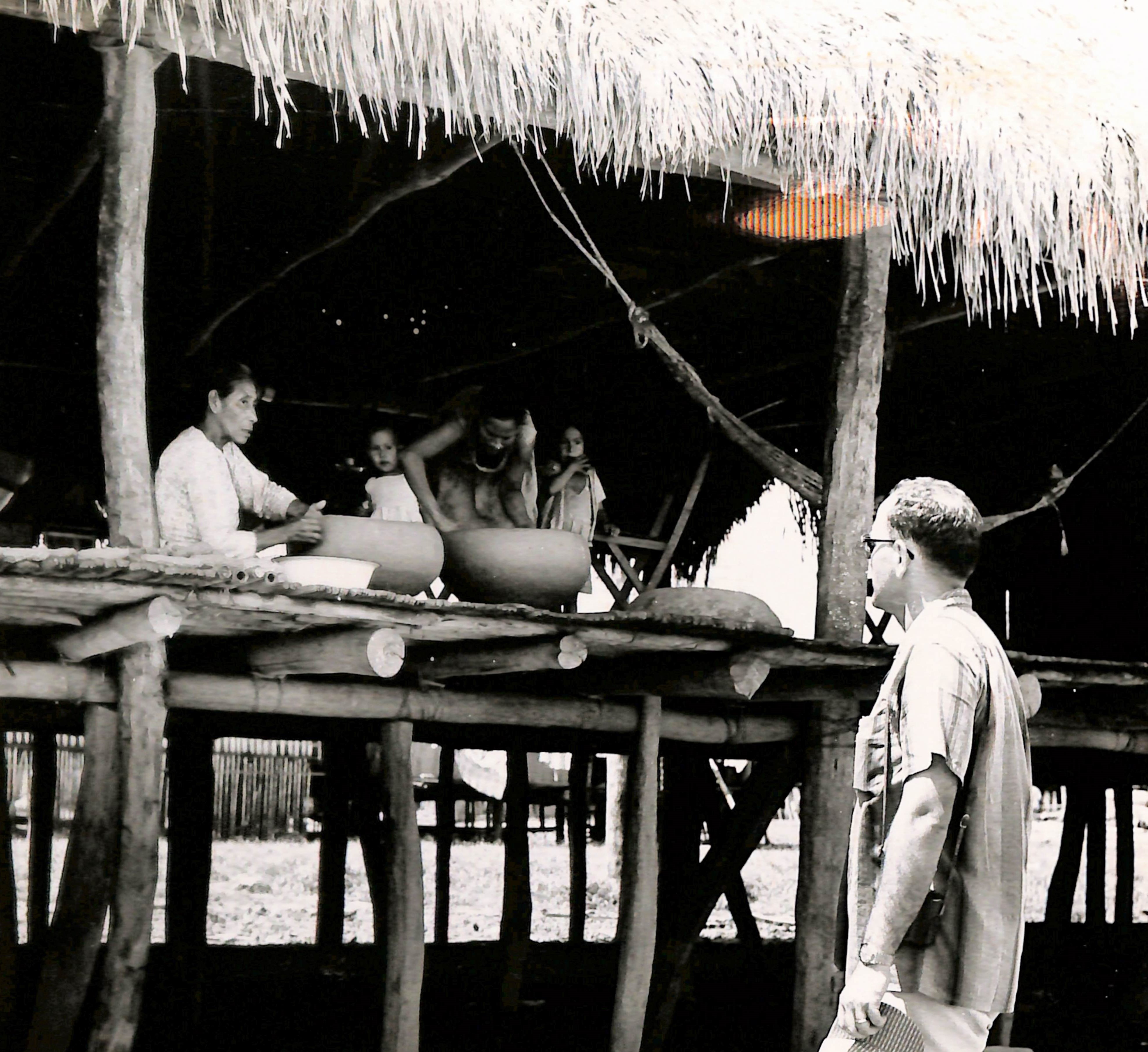 En la imagen se aprecia a dos mujeres y dos niñas dentro de una maloca, típica edificación que puede servir de vivienda en la selva.